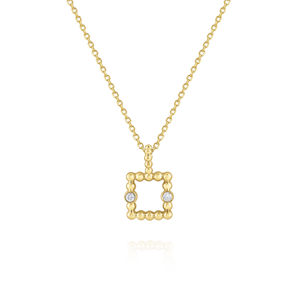 Diamond Square Frame Pendant Necklace Set in 14 Kt. Gold