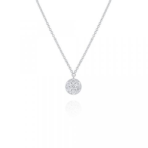 Diamond Round Disc Pendant Necklace Set in 14 Kt. Gold