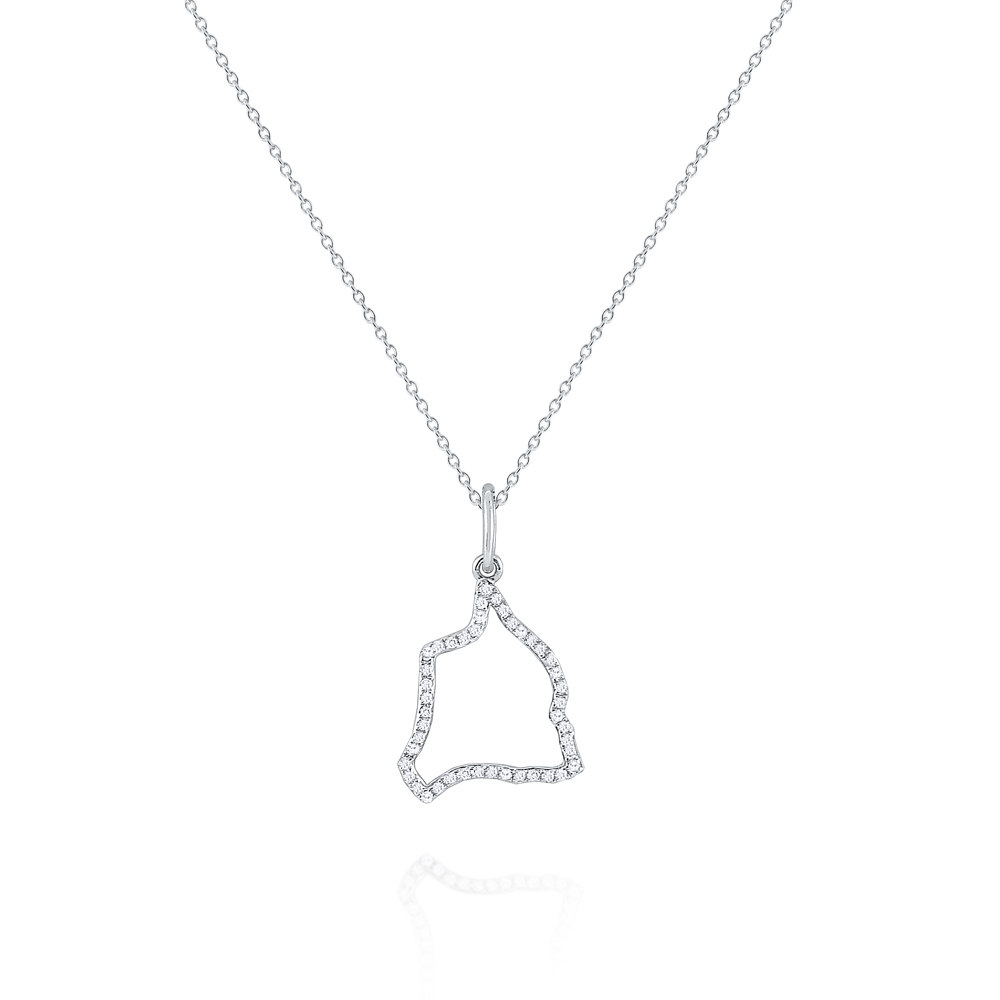 What better way to remember your favorite vacation or represent your homeland than with this sparkling pendant? Shining round brilliant diamonds are arranged in the outline of Hawaii’s largest island. Pick your favorite Hawaiian island with KC Designs other Paradise pendants! (N4548, N4549, & N4550)
