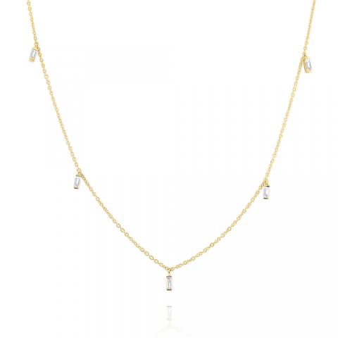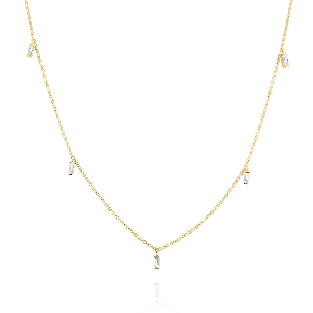 Hanging Baguette Diamond Mosaic Necklace Set in 14 Kt. Gold