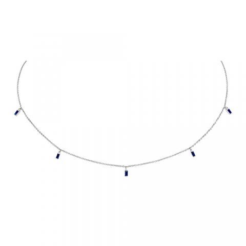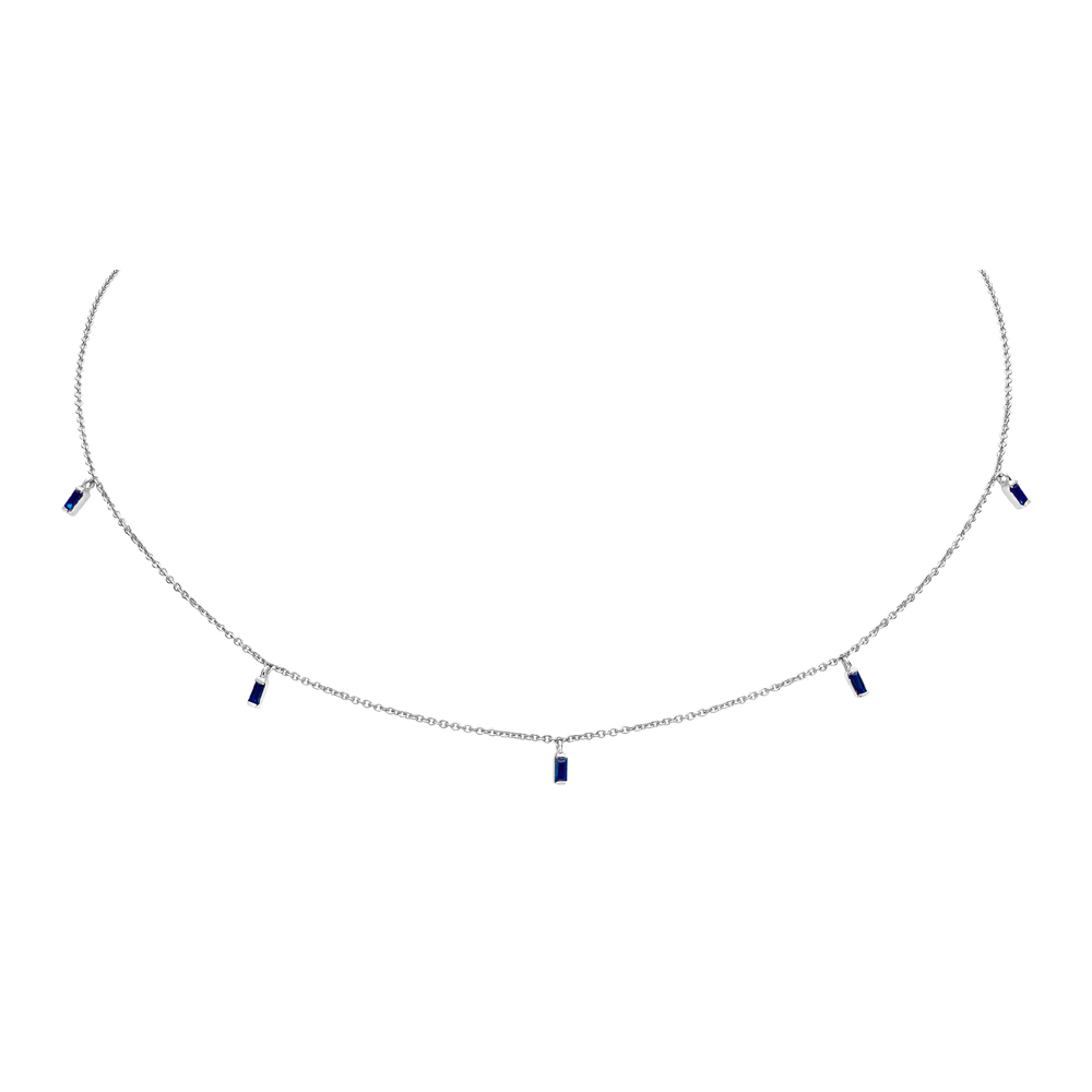 Floating Baguette Sapphire Necklace Set in 14 Kt. Gold