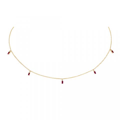 Floating Baguette Ruby Necklace Set in 14 Kt. Gold