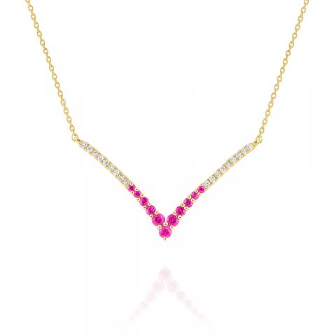 Pink Sapphire & Diamond “V” Necklace Set in 14 Kt. Gold