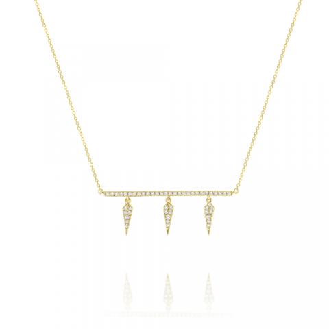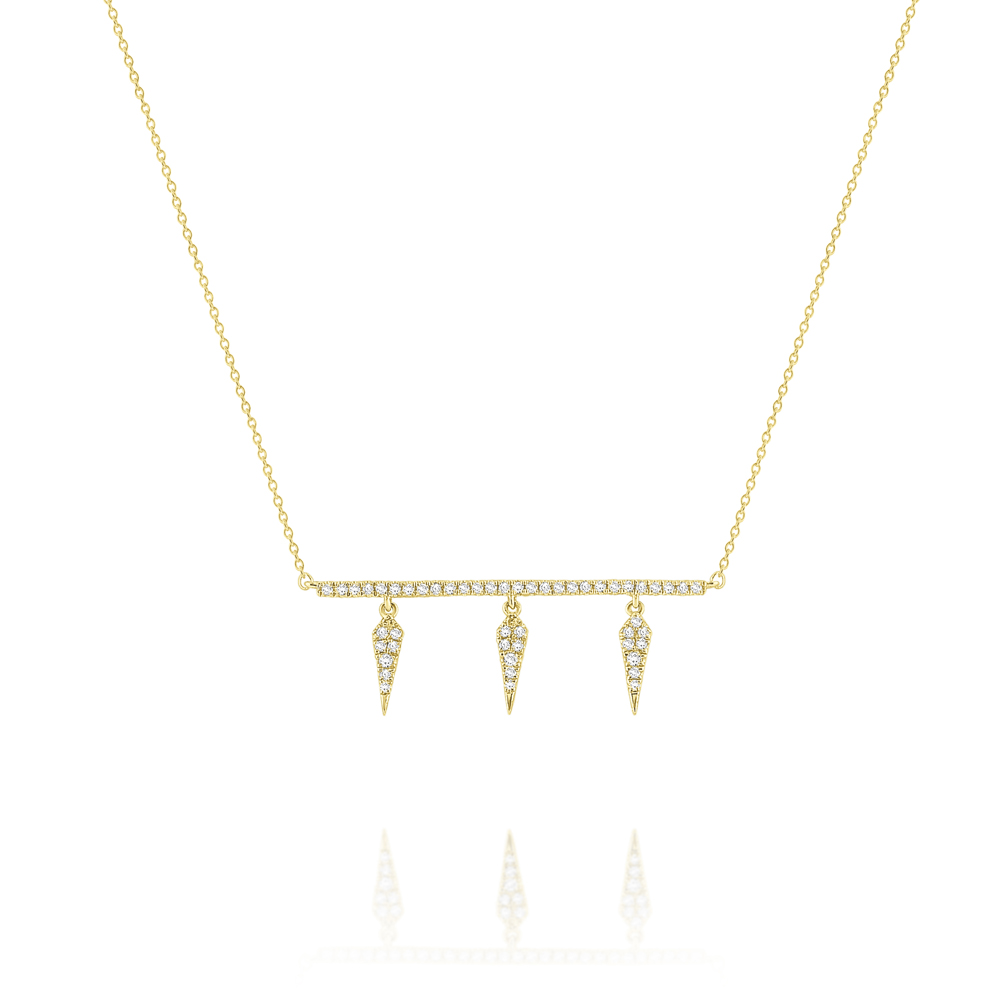 Diamond Bar Necklace with Three Hanging Spike Accents Set in 14 Kt. Gold