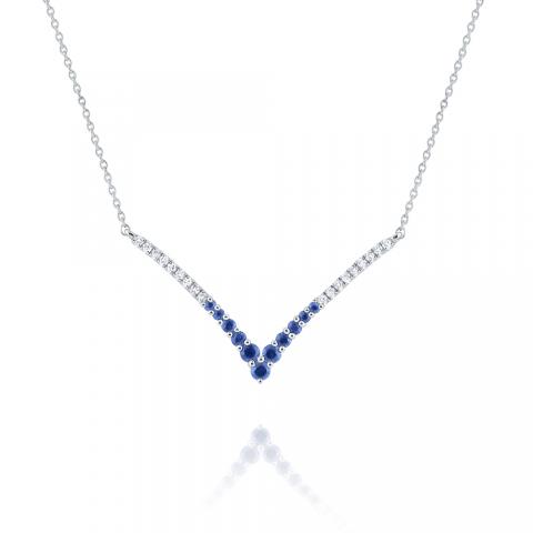 Add a cool pop of color with this graceful necklace! Cerulean blue sapphires & diamonds glimmer in a V shape that sits daintily between your collarbones.