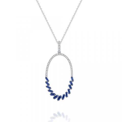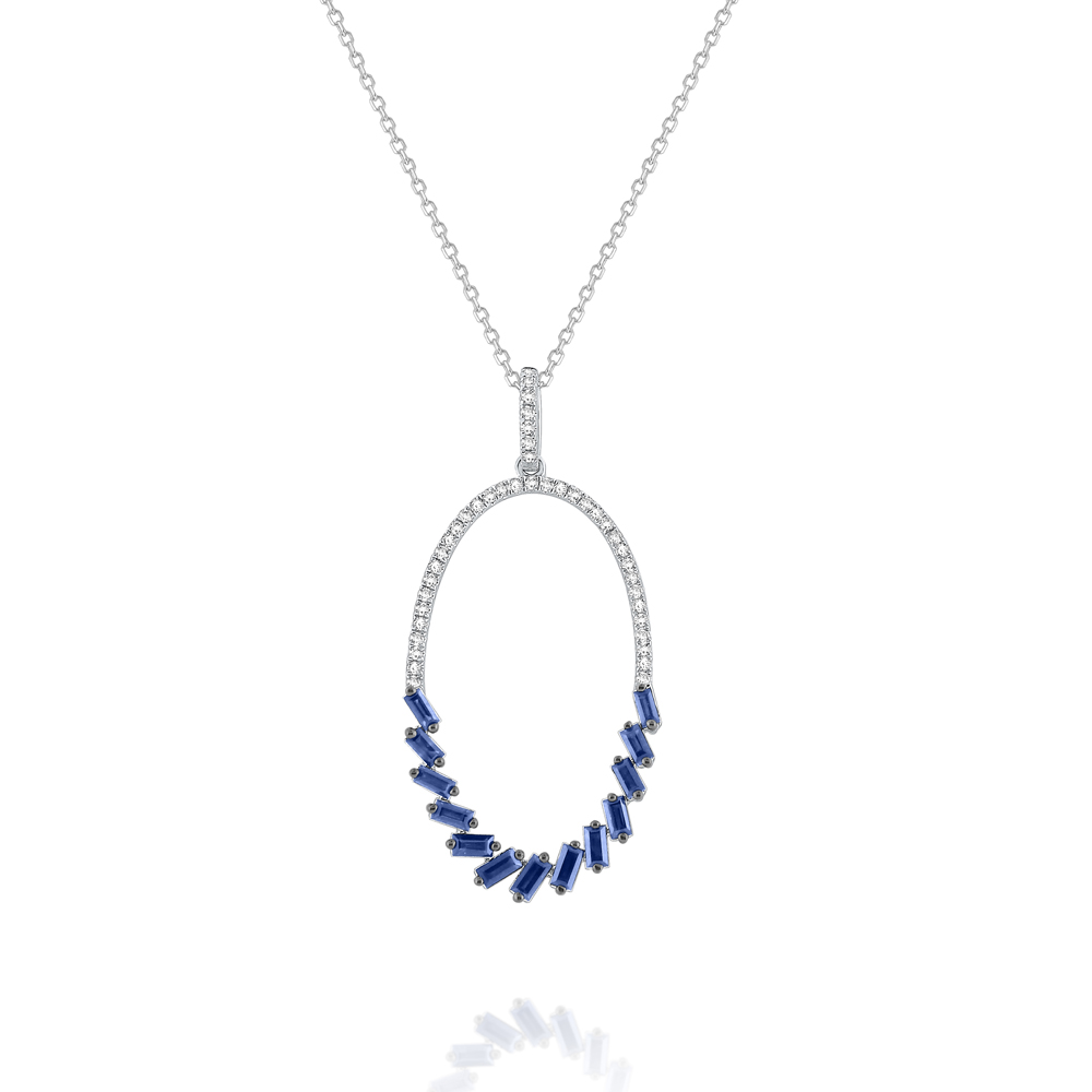 Cool, shining blue baguette sapphires play off of shining white diamonds is a dynamic & chic oval hoop shape. Part of KC Designs Everyday Color Collection, this colorful pendant is sure to get attention.