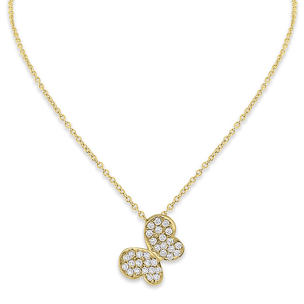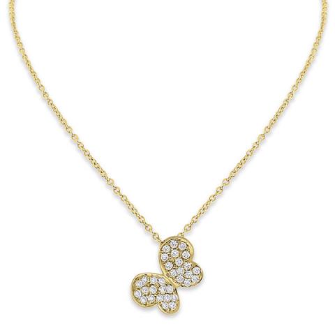 Diamond Butterfly Necklace in 14k Yellow Gold with 32 Diamonds weighing .33ct tw.