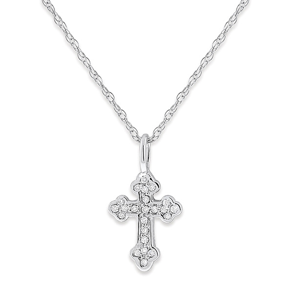 Diamond Baby Cross Necklace in 14k White Gold with 23 Diamonds weighing .08ct tw.
