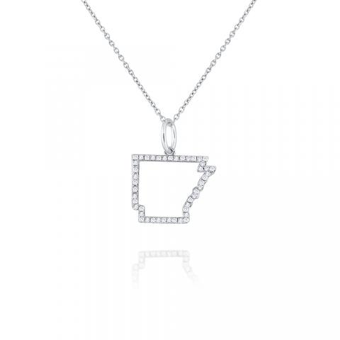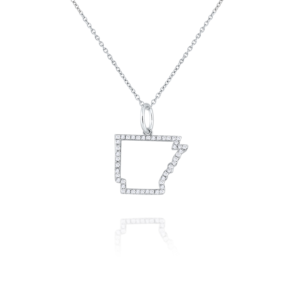 Show pride in your home state with this glittering Arkansas pendant! 47 glittering diamonds create a beautiful outline of the state.