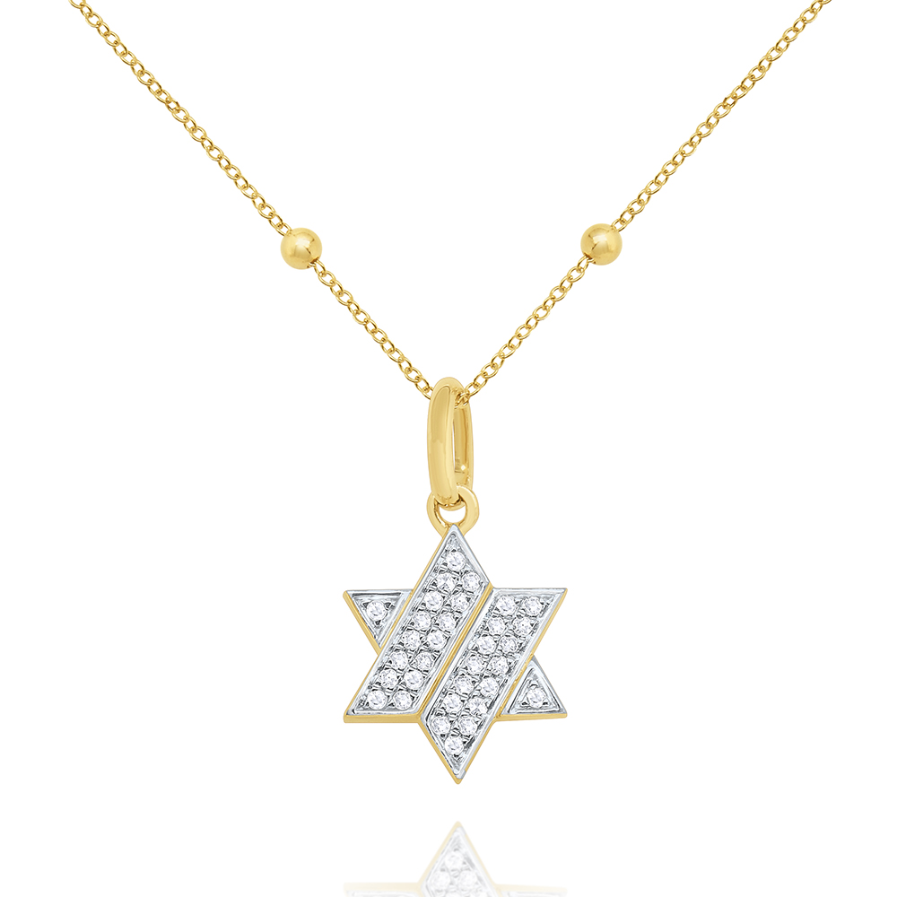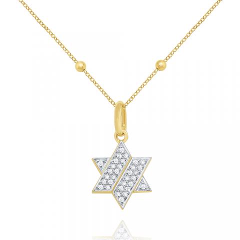 Diamonds shine in this 14k gold Star of David necklace on an 18" beaded chain.