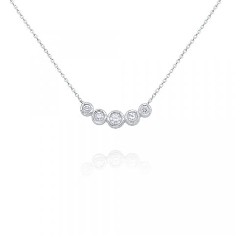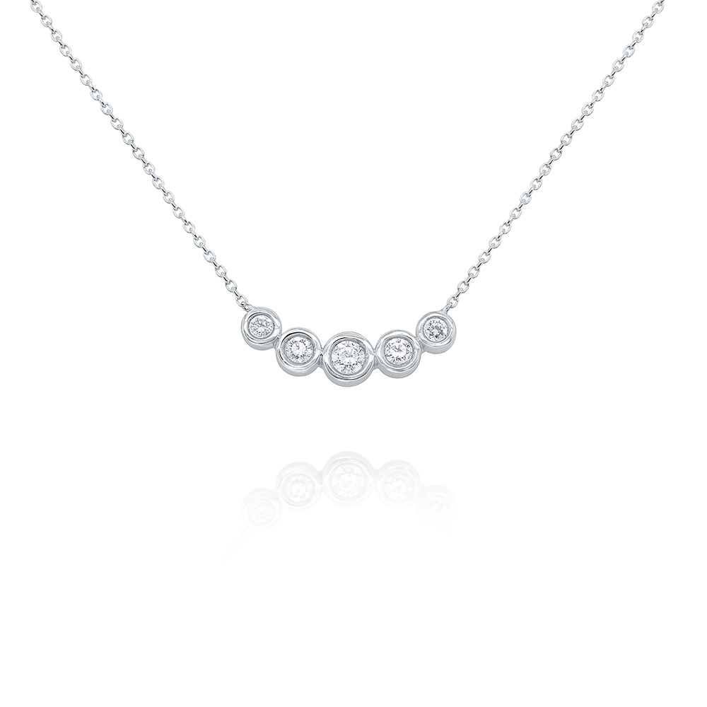 Five diamonds set in 14k gold make up this traditional curve bar necklace.