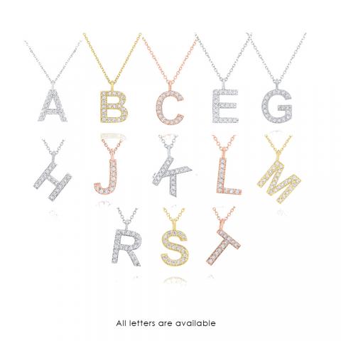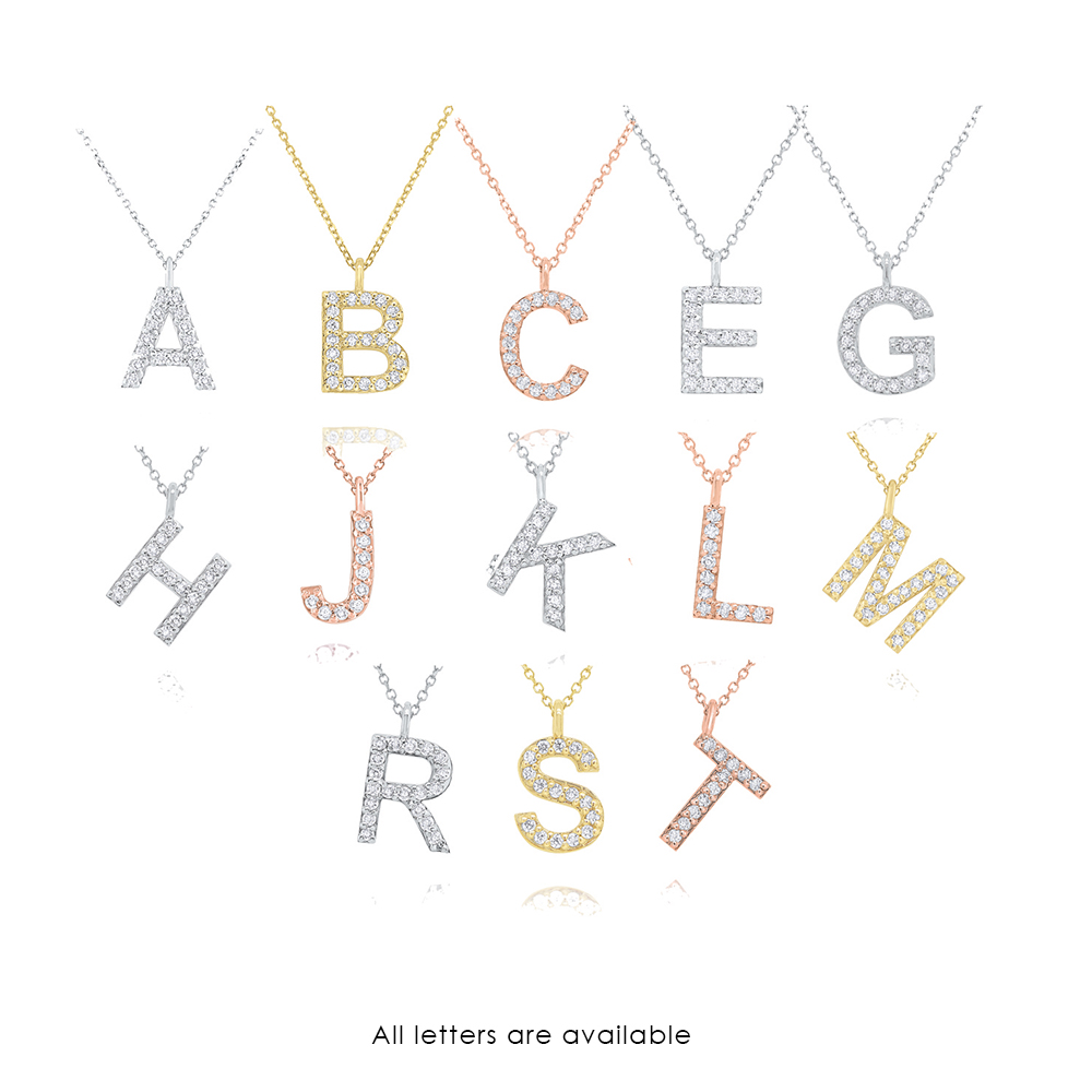 14k Gold and Diamond Modern Block Initial on a 16" Chain