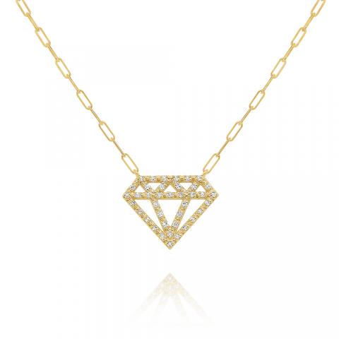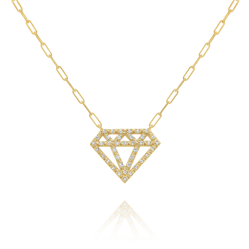 Show your love for gems with this diamond outline necklace on an 18" paperclip chain.