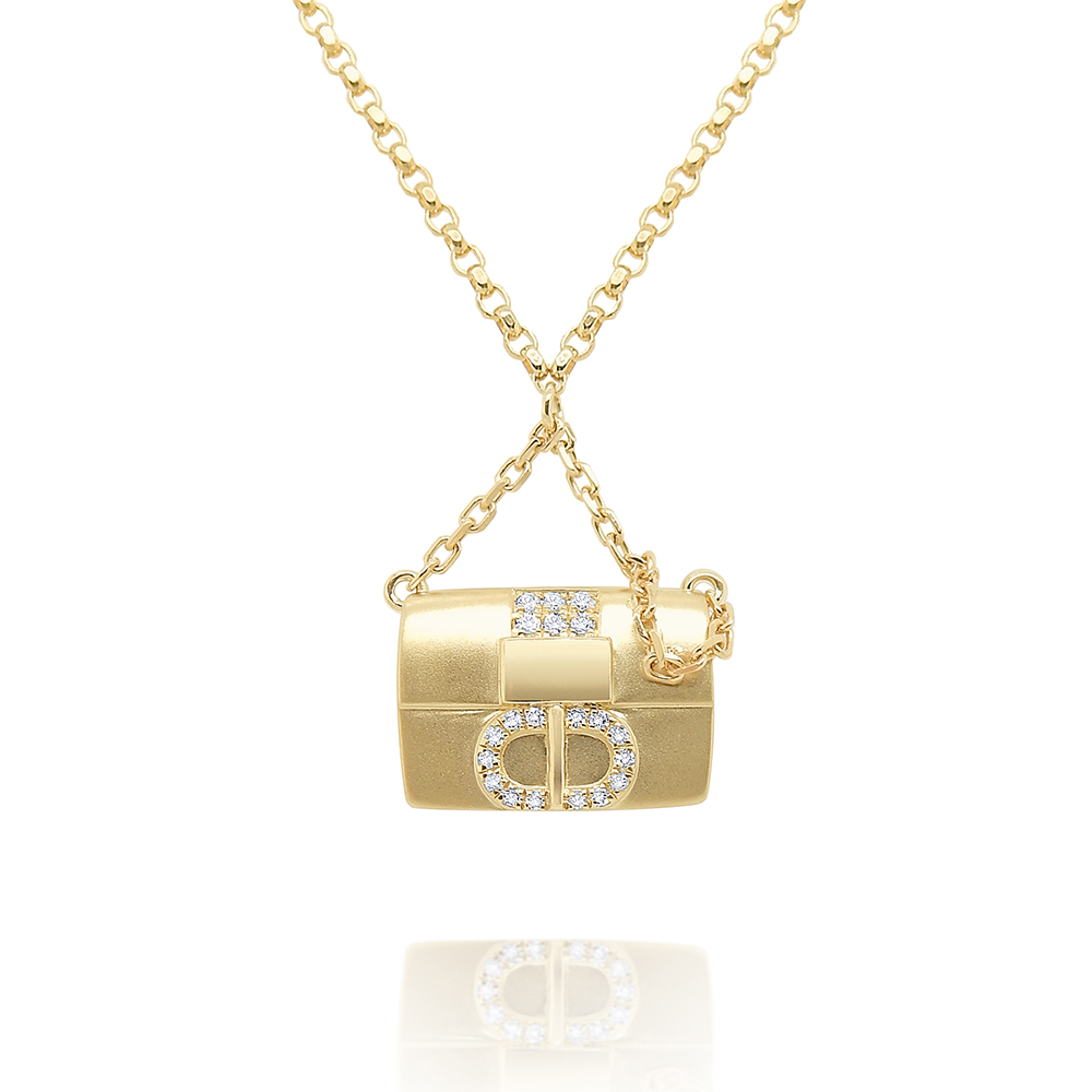 For all you handbag lovers...time to add one with gold and diamonds to your collection! Chain is adjustable 13-17-18".