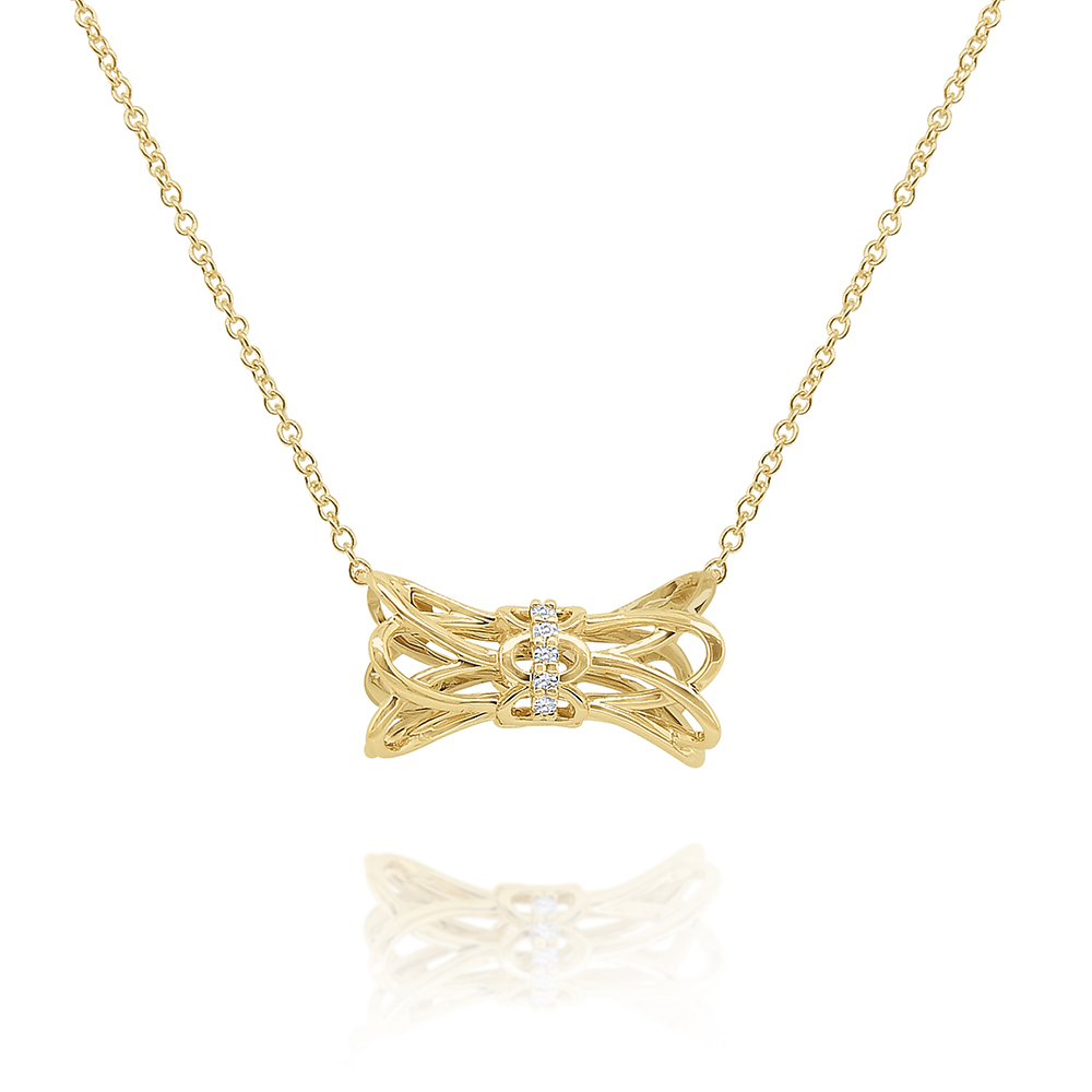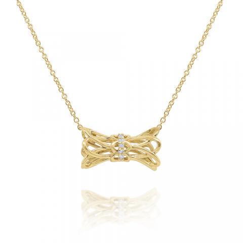 An open airy design accented by diamonds make up this modern barrel necklace. The chain is adjustable - 16,17,18".