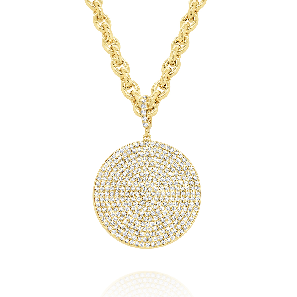 This stunning diamond pave disc on a bold gold link chain will have heads turning.