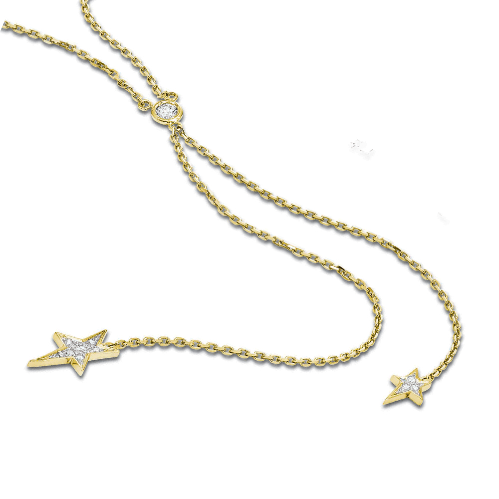 Be right on trend with a little bit of whimsy...14k gold and diamond star lariat necklace.
