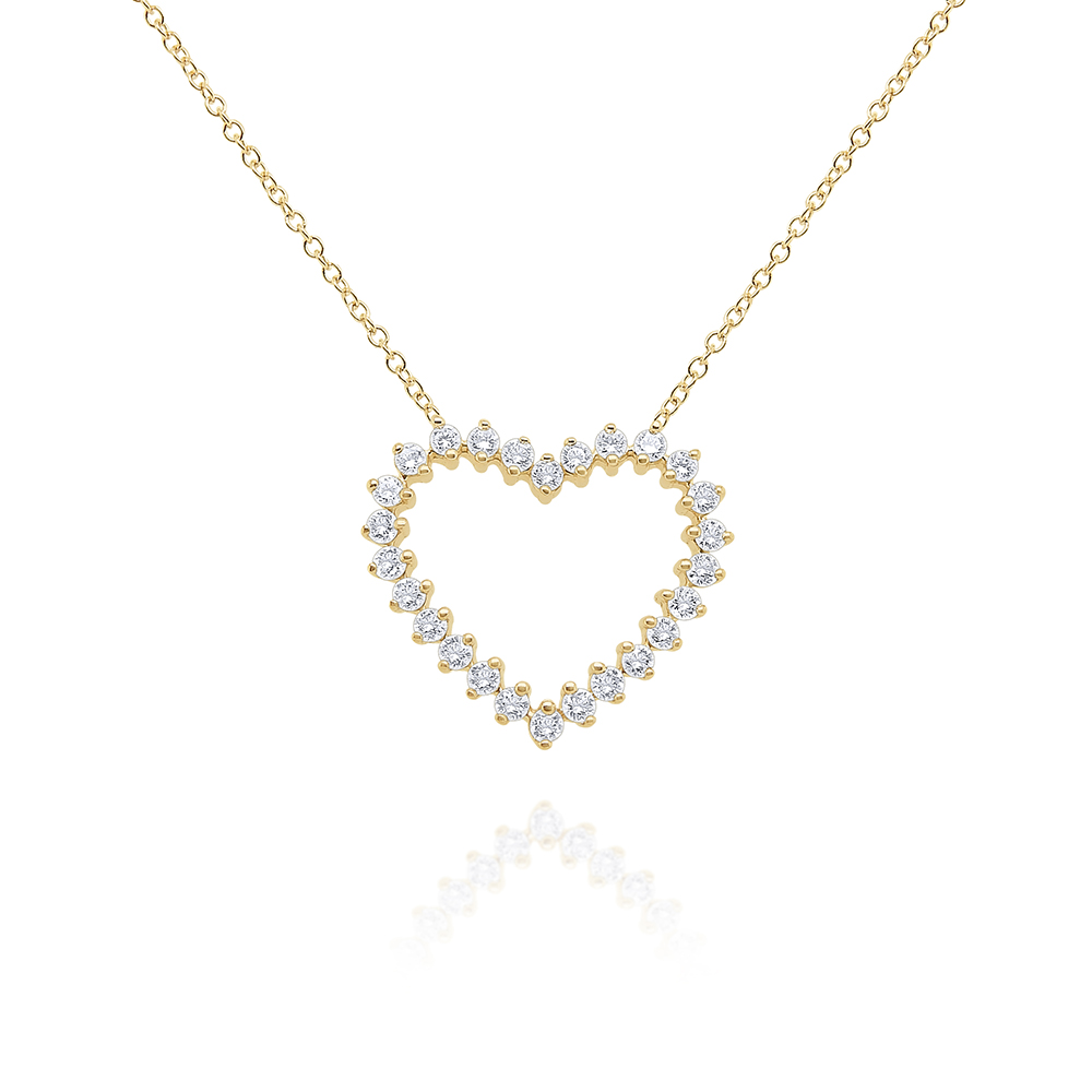 26 diamonds each set with two prongs make up this modern style heart. Chain is adjustable- 16,17,18".