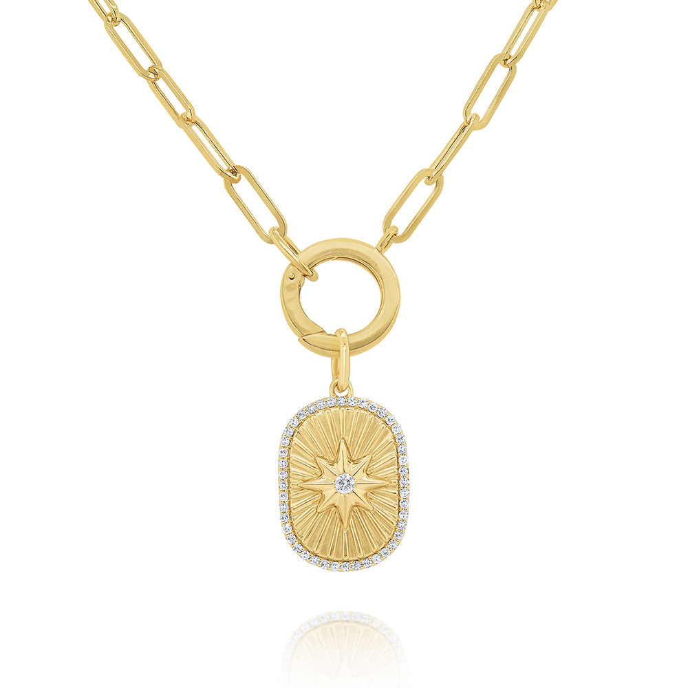 14k Gold and Diamond Charm Holder Chain with Starburst Charm