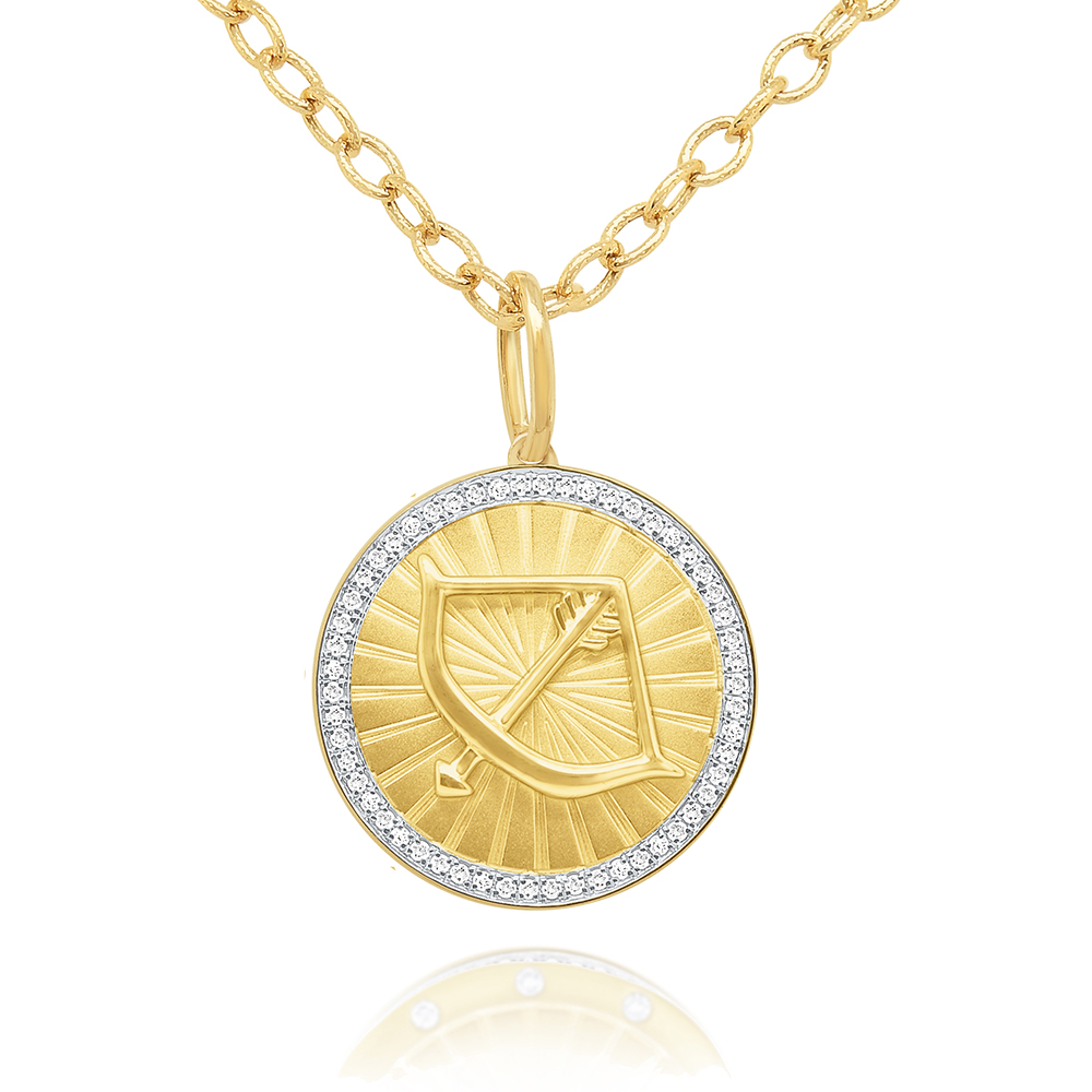 14k Gold and Diamond Sagittarius Necklace, 16"
