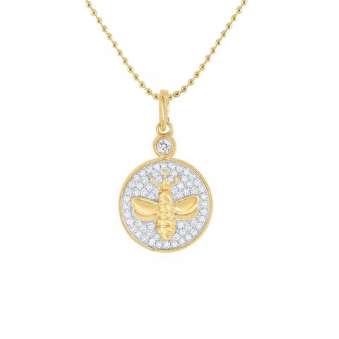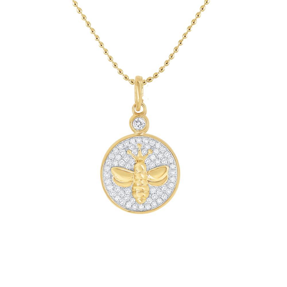 14k Gold and Diamond Queen Bee Disc Necklace