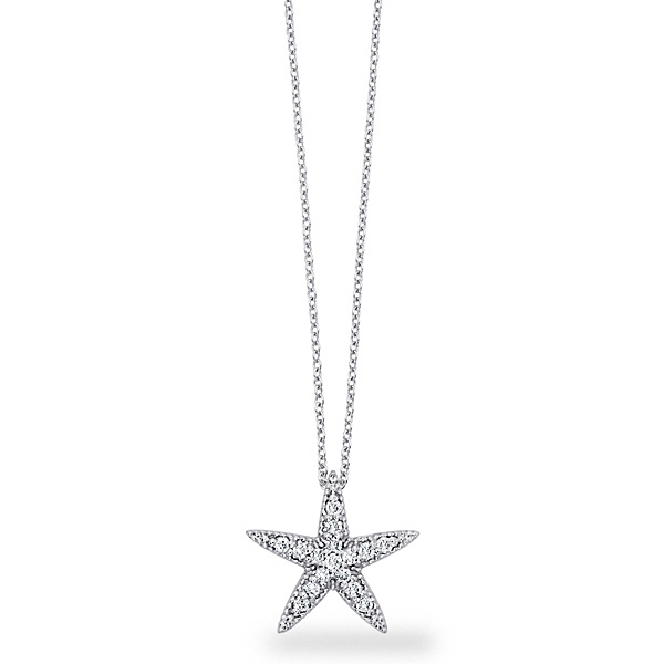 Diamond Starfish Necklace in 14K White Gold with 16 Diamonds Weighing .20ct tw