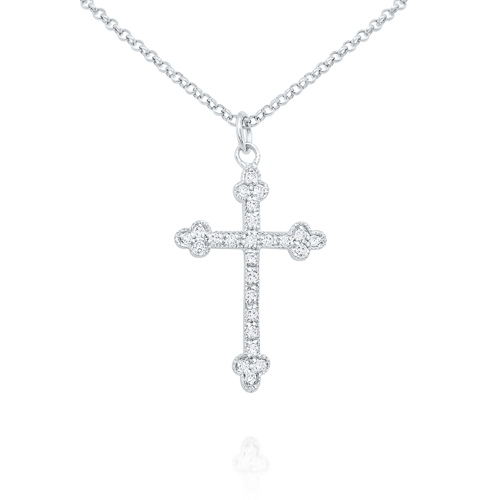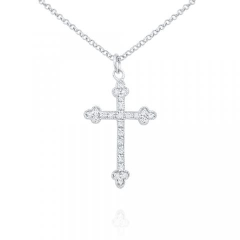 Show your faith with this stunning diamond greek style necklace. Chain is 18".
