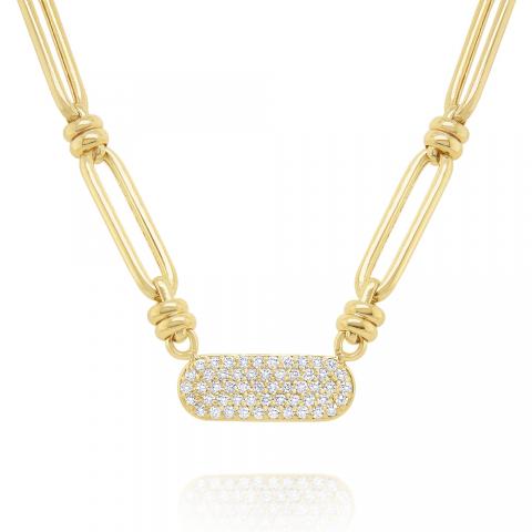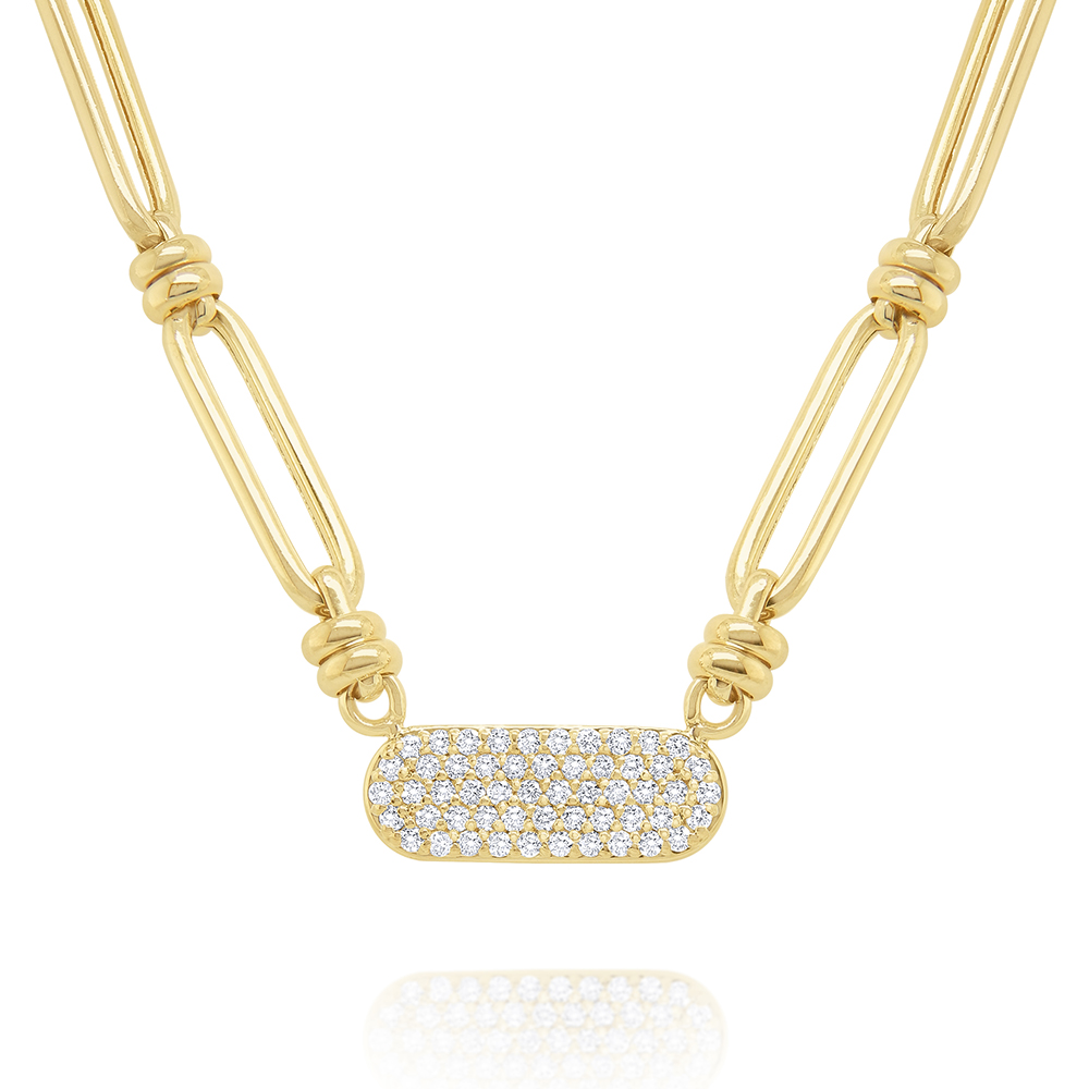 Make a bold statement with this diamond pave horizontal oval hanging from a trending paperclip chain. Note the creative clasp that blends in with the design.