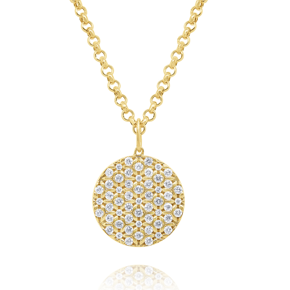 A modern set diamond disc hangs below a bold link chain. Layer with various weight chain link necklaces to create your own personal style.