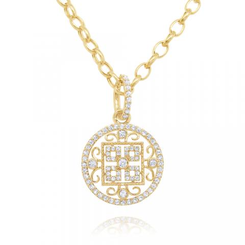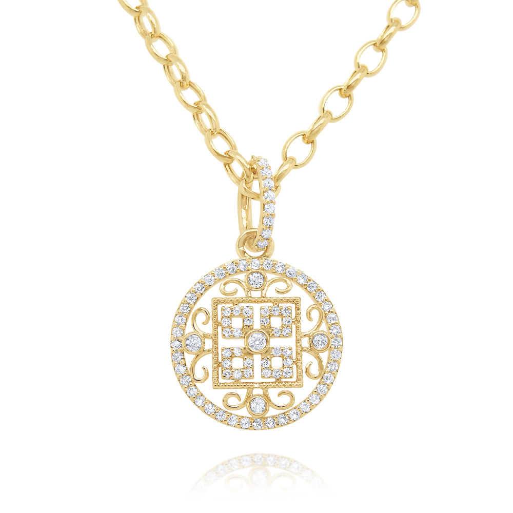 Intricate mandalas inspired this gold and diamond medallion necklace. Pair with the matching ring, R5873. Chain is 18".
