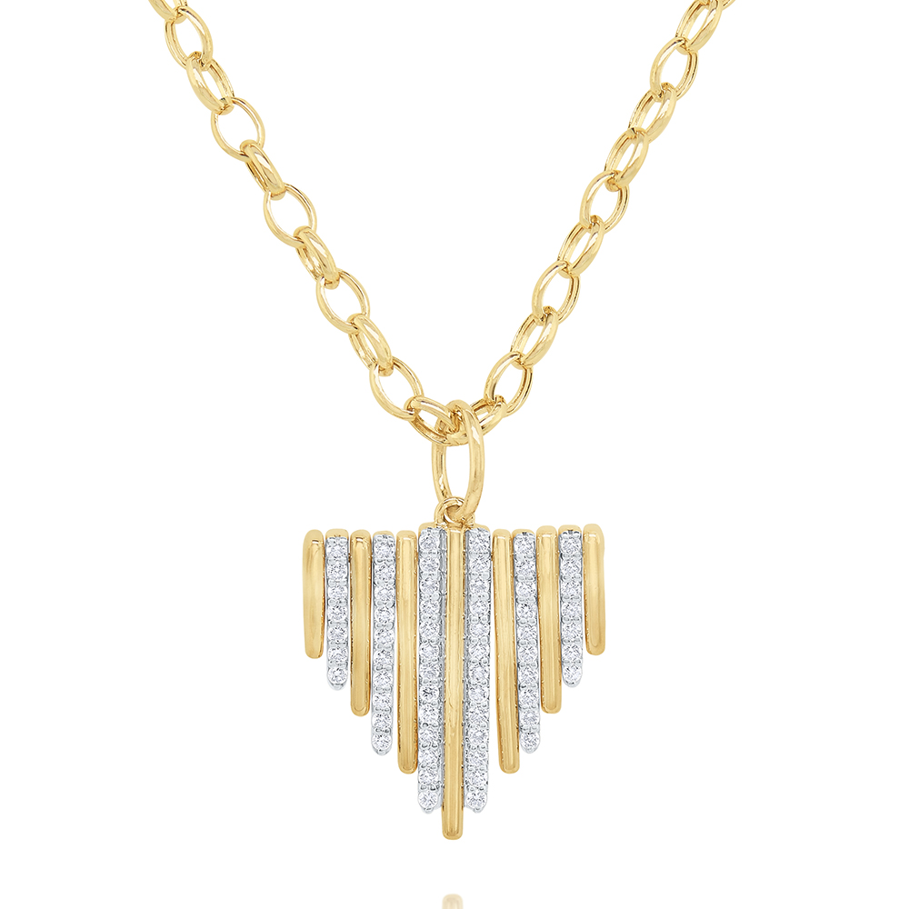 Vertical gold and diamond bars individually dance below an 18" bold gold link chain.