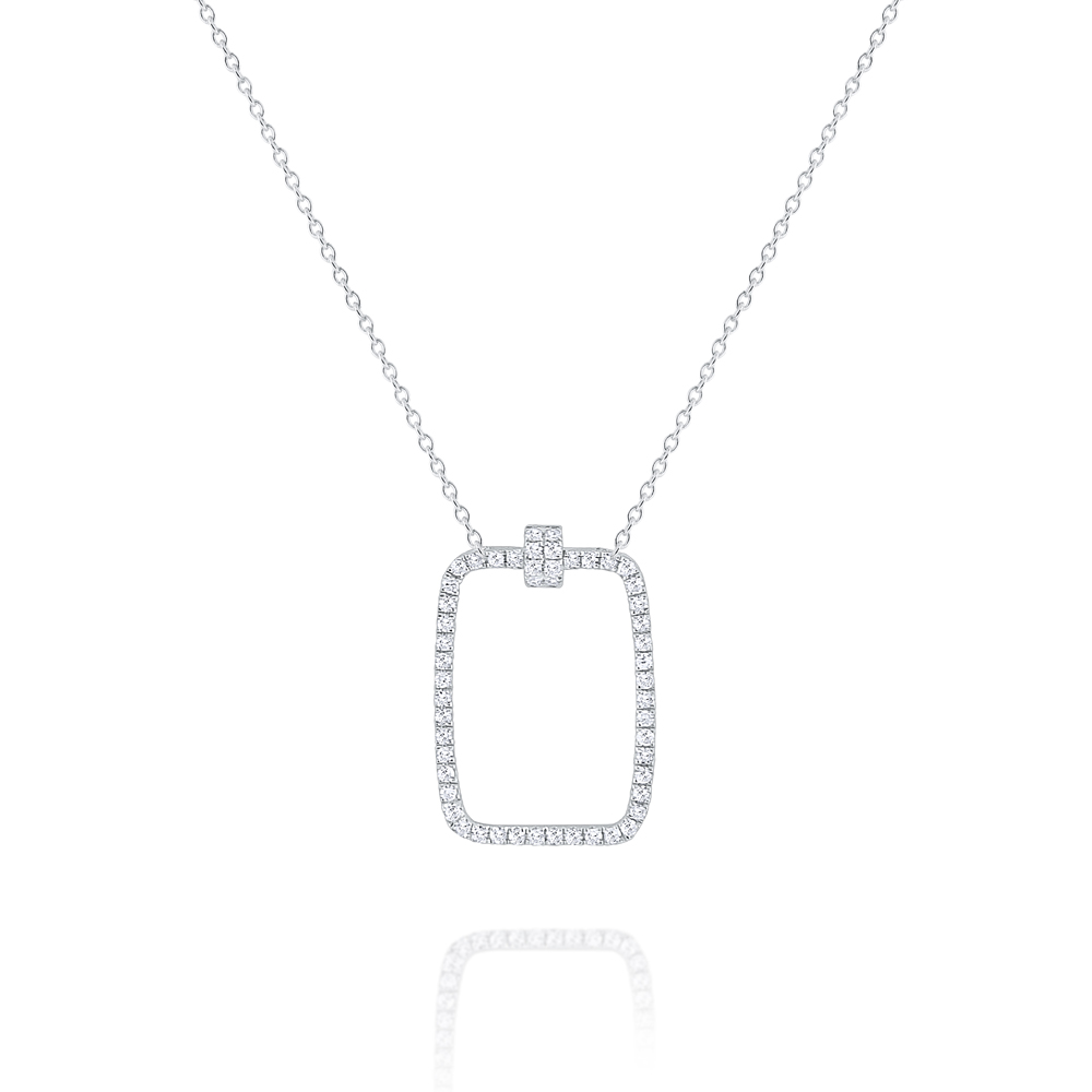 Need the perfect accessory to go with your look? This rectangular frame necklace pairs well with any outfit. Shimmering round diamonds align in a rectangular frame shape that is sure to catch the eye.