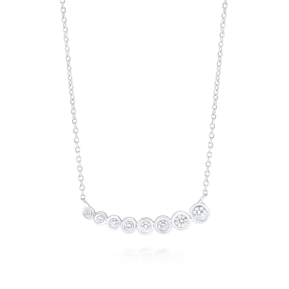 Simple bezel set diamonds in a delicate curve will add just enough sparkle to your day.