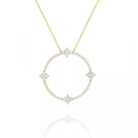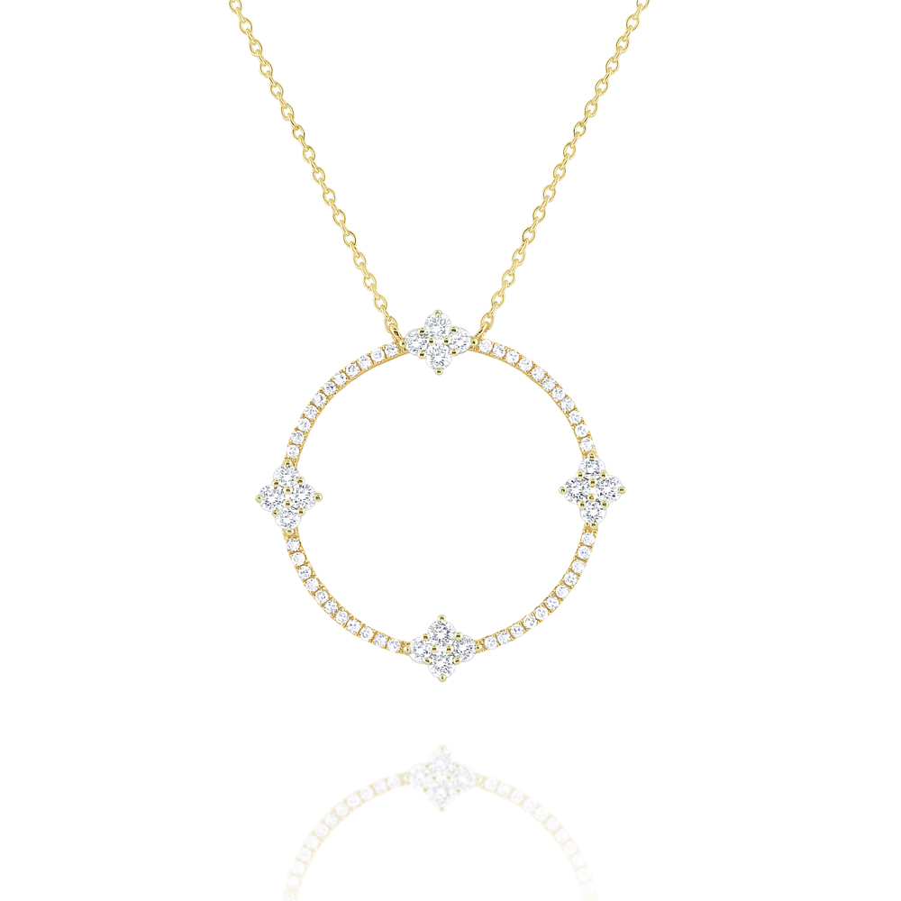 Dare to dazzle in this fanciful circular frame Necklace. Sparkling diamonds align in a circle with four diamond accents to create a romantic and chic look.