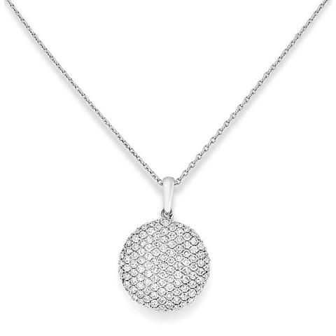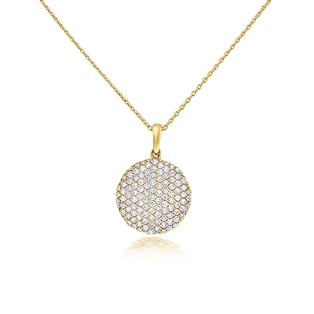This stunning diamond disc necklace shines with 109 sparkling diamonds. it will bring a touch of glitz and glamour to everything that you wear.