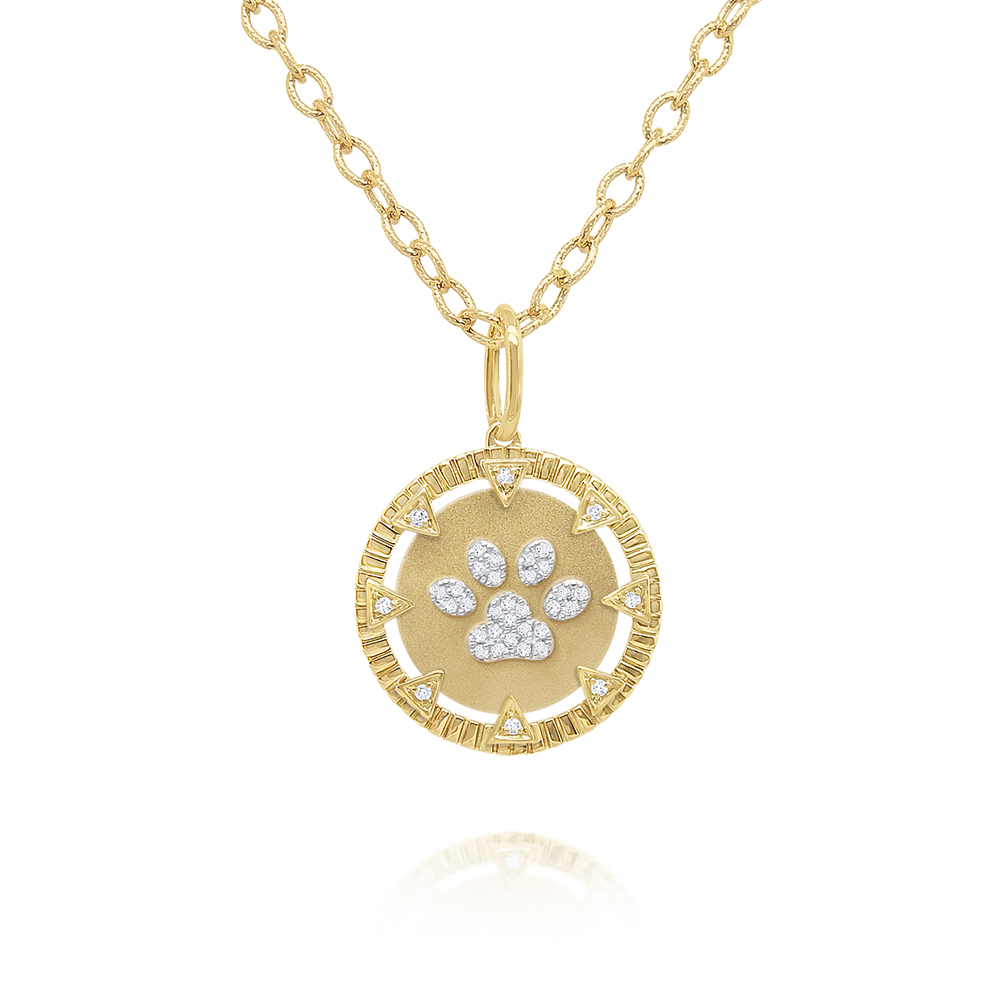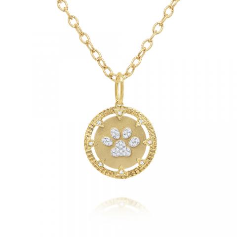 14k Gold and Diamond Paw Medallion Necklace, 18" Chain