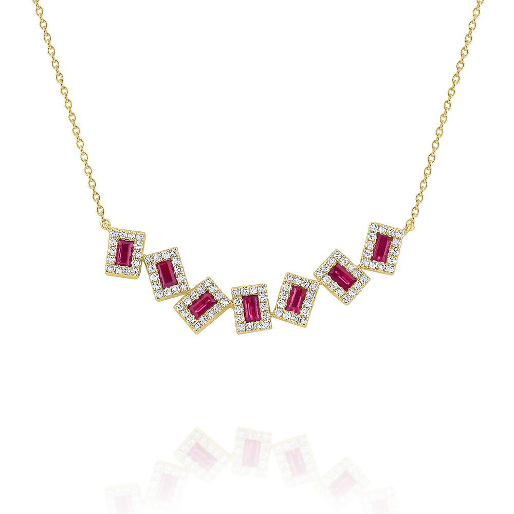 Add a pop of fun color to your look with this domino necklace. Part of KC Designs Everyday Color Collection, 7 fiery red rubies are framed by sparkling round diamonds that are sure to light up any room!