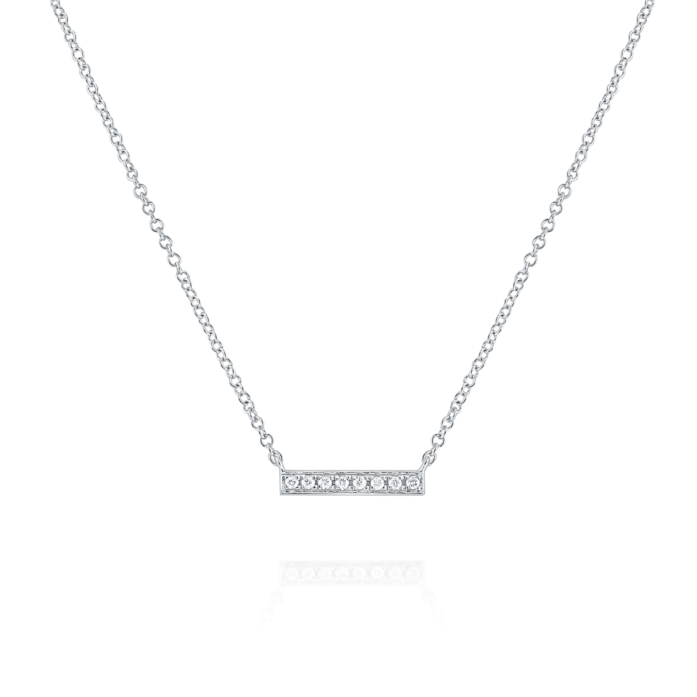 You will really "raise the bar" in terms of style when you wear this chic diamond bar necklace. It has a sleek and modern minimalist style for a cutting edge look.