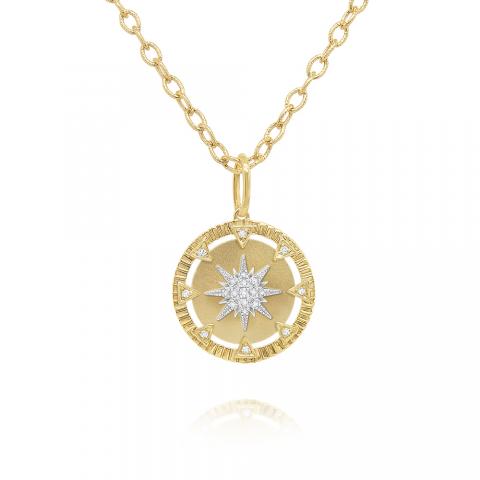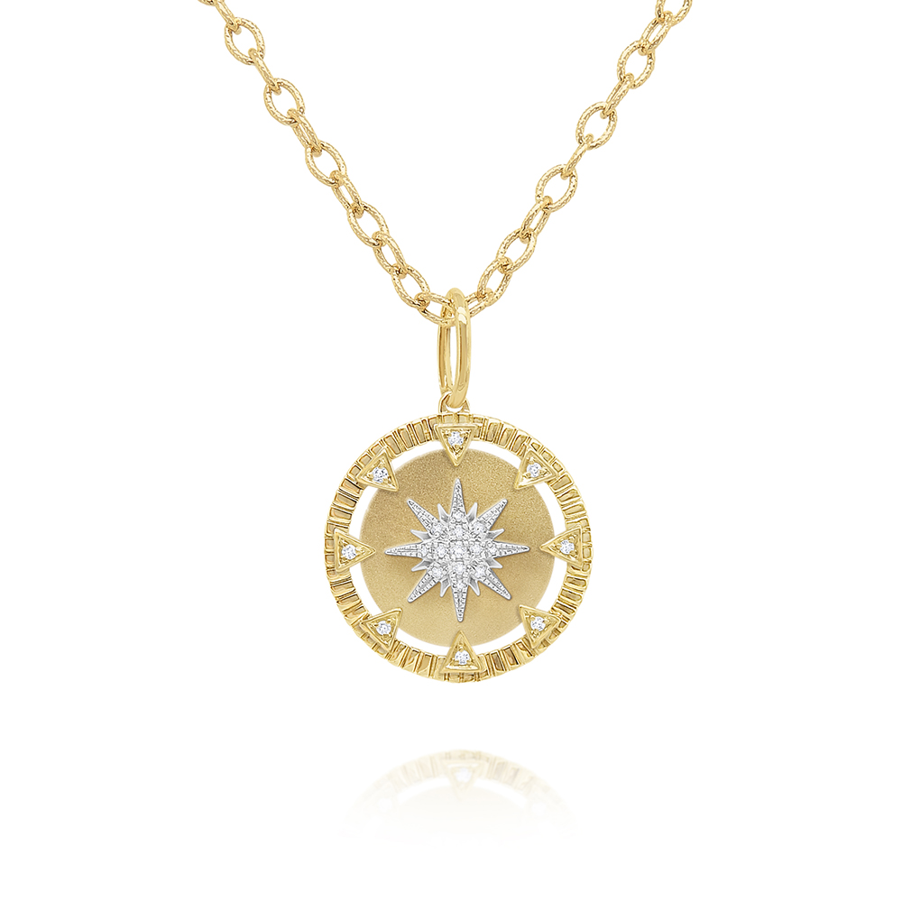 4k Gold and Diamond Starburst Medallion Necklace, 18" Chain