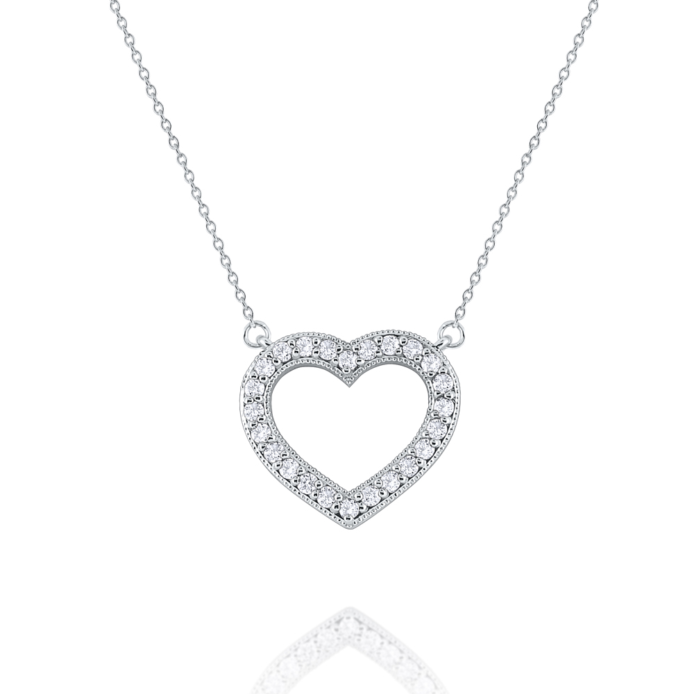 Are you looking for that perfect Valentine's Day or Anniversary Gift to sweep her off her feet? This charming and romantic diamond heart necklace will show her that she is always in your heart. With 24 shimmering round diamonds, she won't believe her eyes!