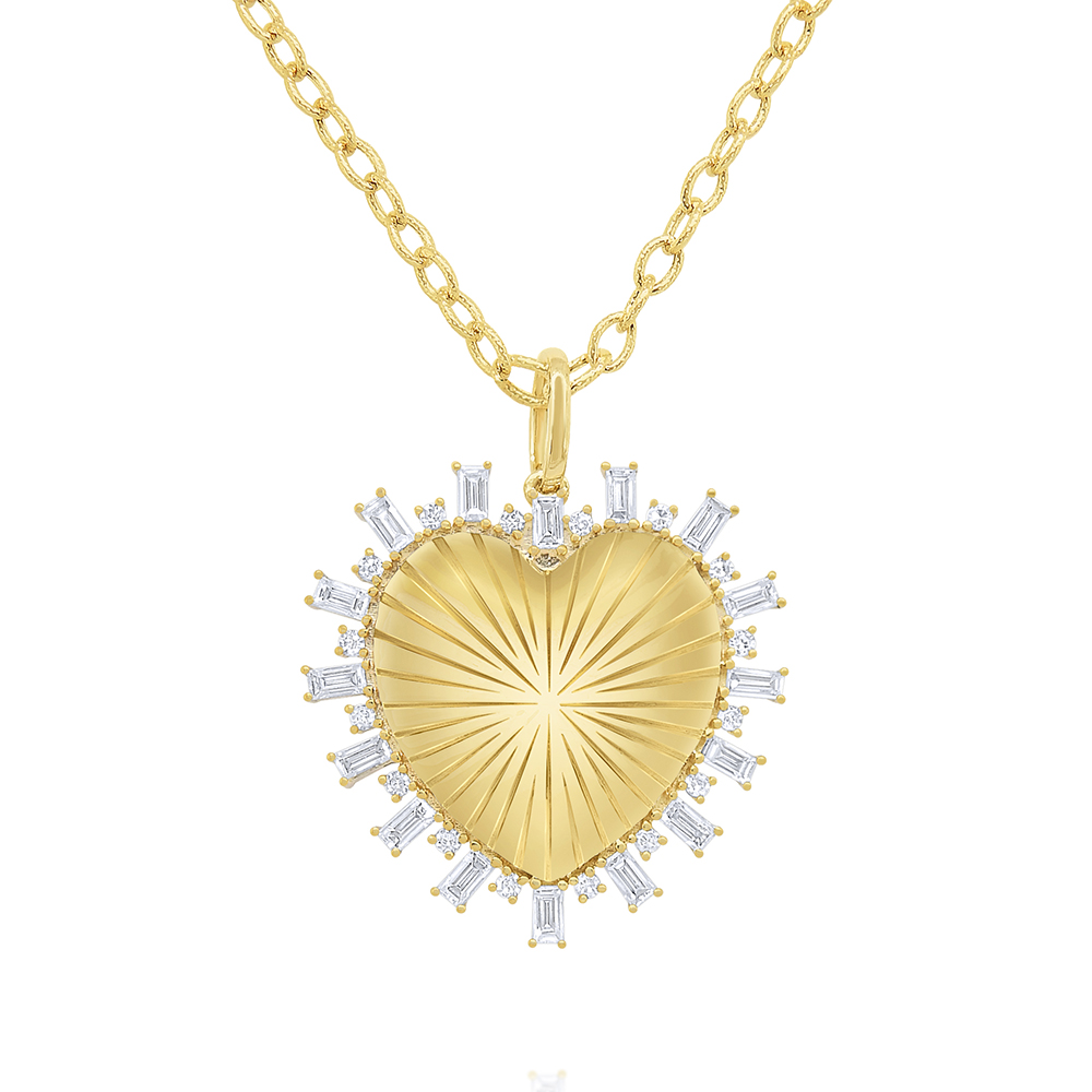 14k Gold and Diamond Ray of Light Heart Necklace, Medium