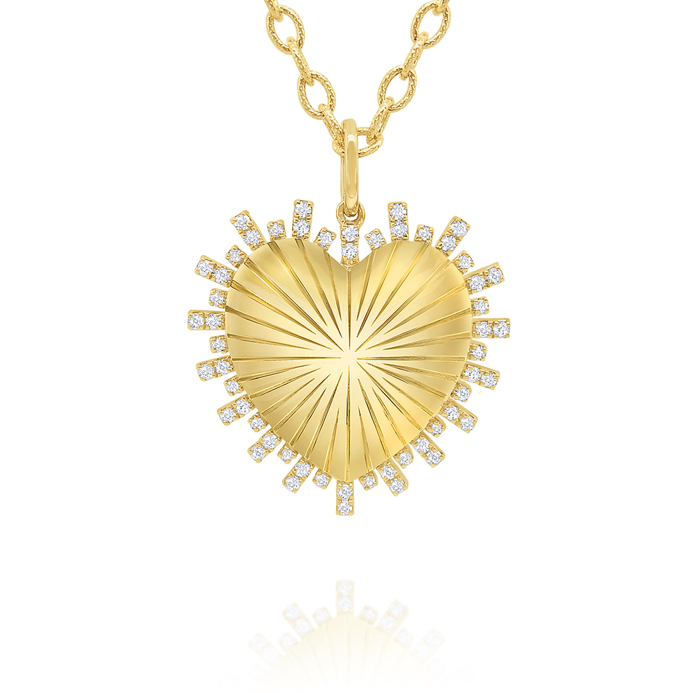 14k Gold and Diamond Ray of Light Heart Necklace, Large