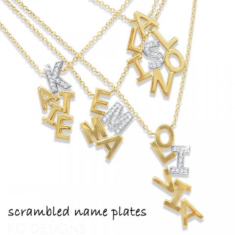 14k Gold and Diamond Scrambled Nameplate Necklace