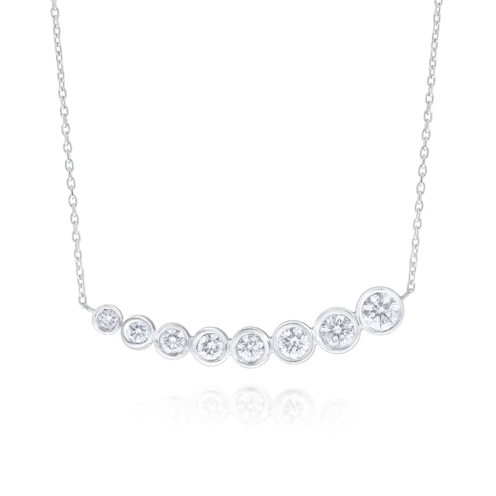 Simple bezel set diamonds in a delicate curve will add just enough sparkle to your day.