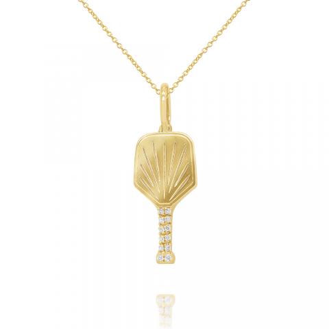 Ad some sparkle to your swing with this adorable gold and diamond pickleball necklace.