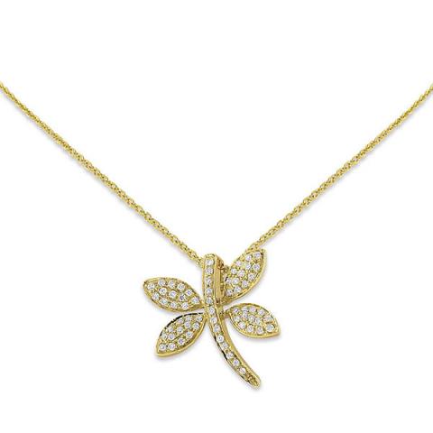Diamond Dragonfly Necklace in 14k Yellow Gold with 65 Diamonds weighing .20ct tw.