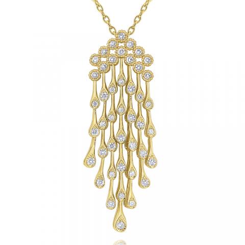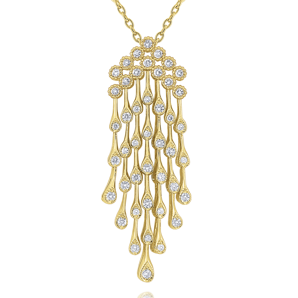 Tassels of sparkling diamonds & shining 14kt. gold hang down to create a charming waterfall effect.