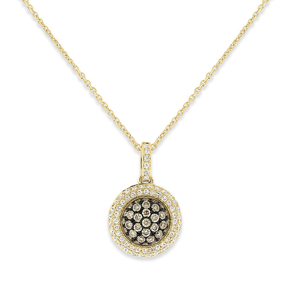 Champagne And White Diamond Small Circle Necklace in 14k Yellow Gold with 96 Diamonds weighing .58ct tw.