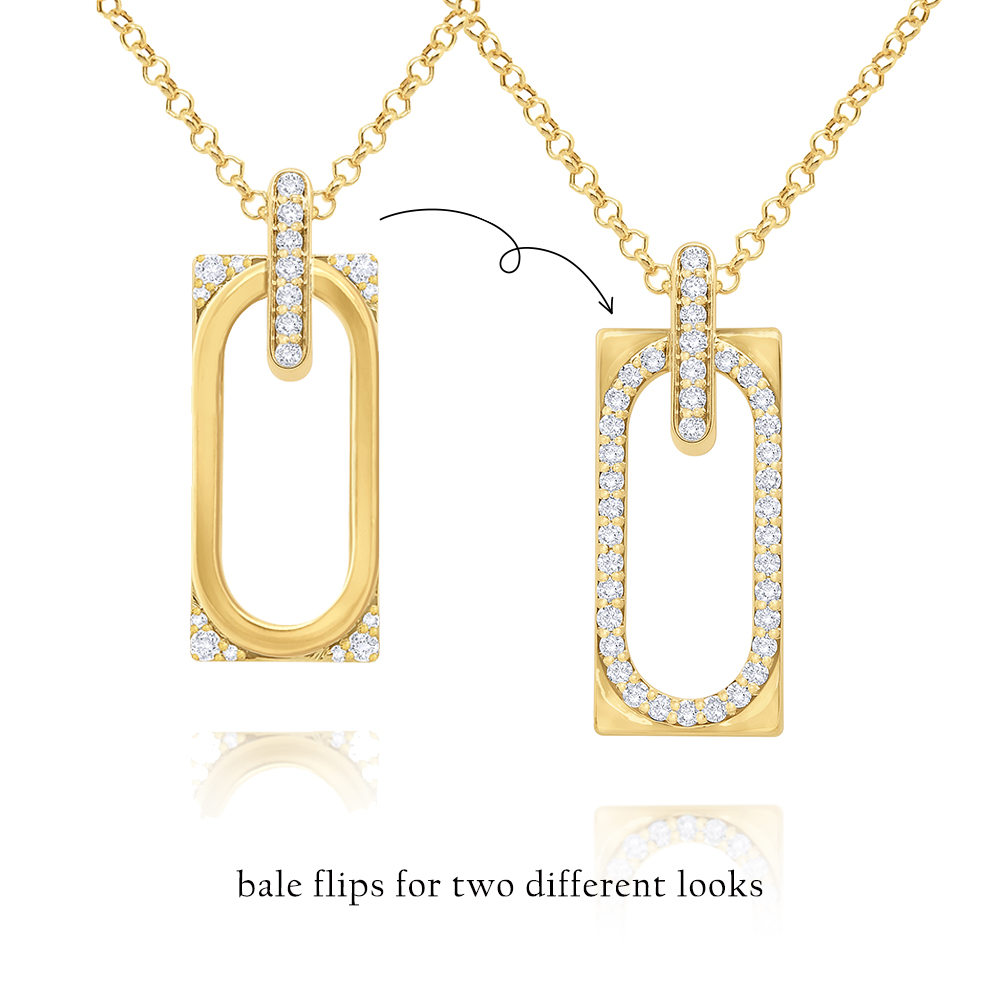 One necklace...two great looks. Switch day to night with this contemporary gold and diamond design simply by rotating the bale.
