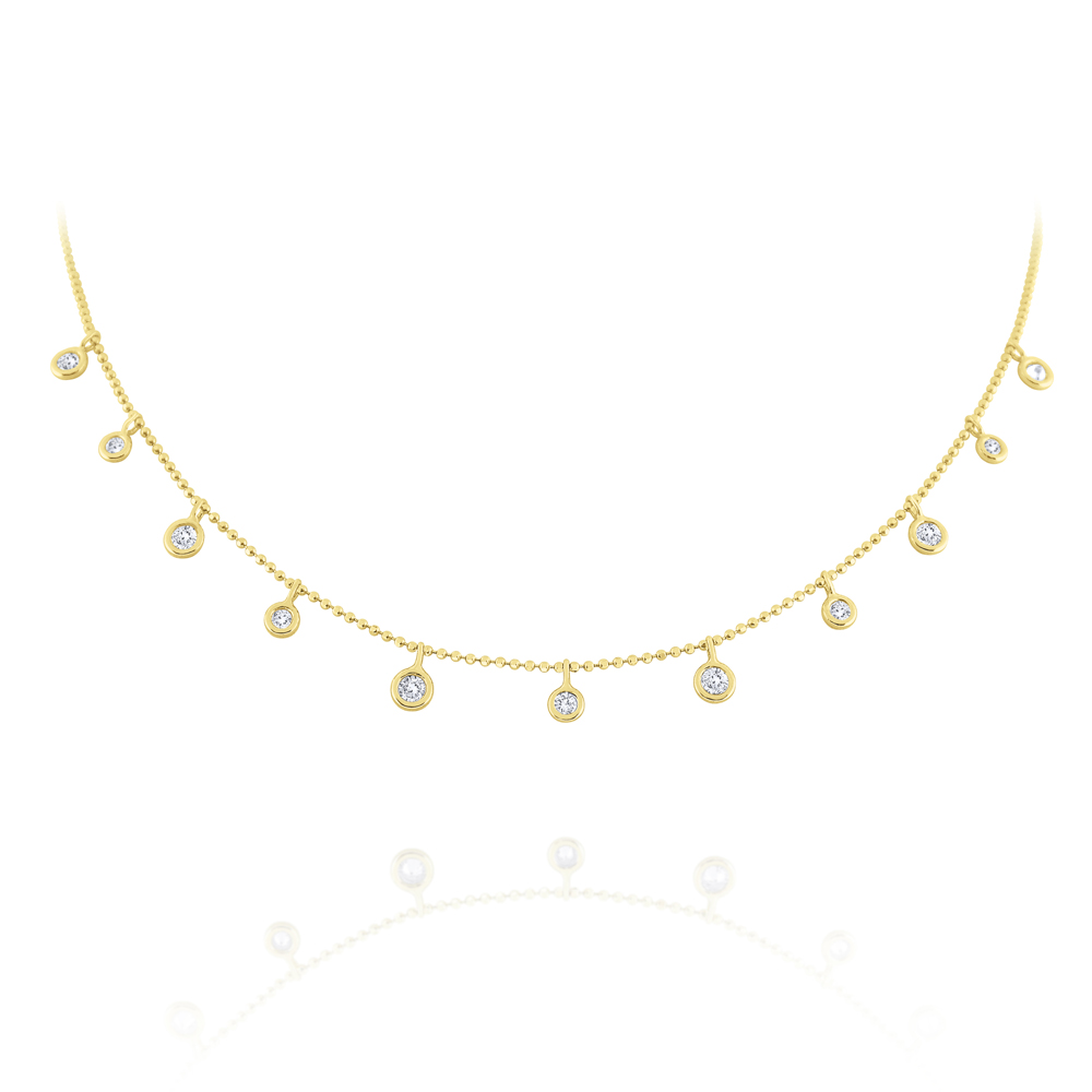 Glittering bezel set diamonds are sweet like candy as they shine from a 14 kt. gold ball chain that is perfect for layering.